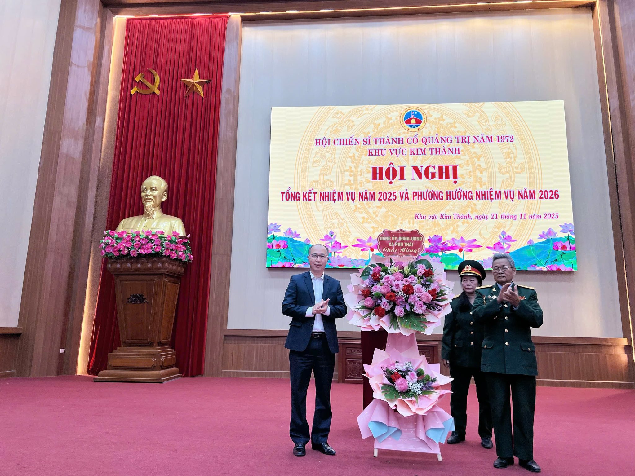 Sáng ngày 21-11, Hội chiến sĩ Thành cổ Quảng trị năm 1972 khu vực Kim Thành đã tổng kết hoạt động năm 2025, phương hướng nhiệm vụ năm 2026. Dự hội nghị có lãnh đạo Hội chiến sĩ Thành cổ Quảng trị năm 1972 Thành phố, đồng chí Phạm Tiến Nhuận – Phó CT UBND xã.