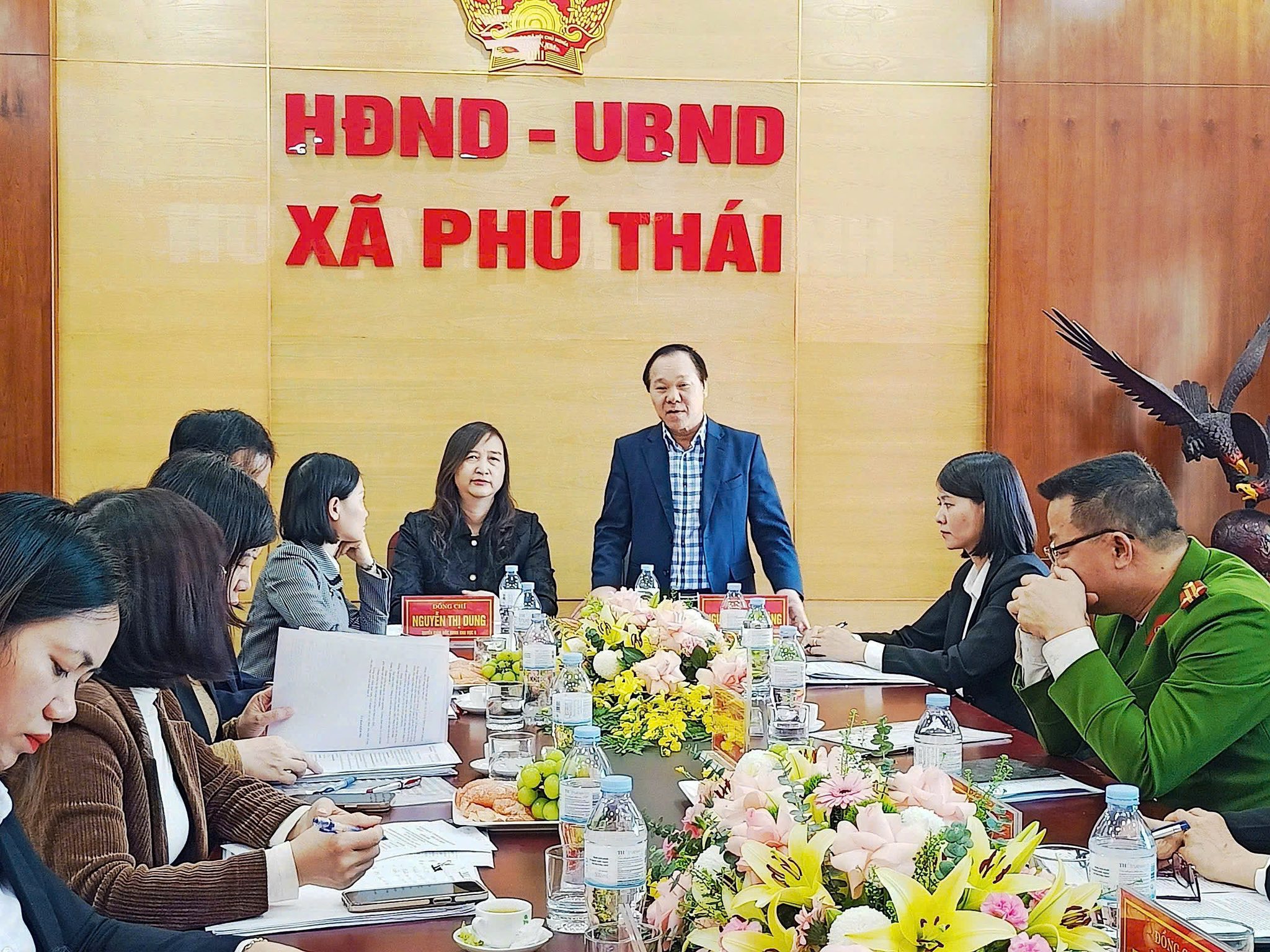 Tiếp và làm việc với đoàn có đồng chí Nguyễn Hữu Thông- TUV, Bí thư Đảng ủy, Chủ tịch HĐND xã; cùng dự có lãnh đạo UBND xã và đại diện các phòng, ban, ngành có liên quan; đại diện Quỹ tín dụng nhân dân Phú Thái, Kim Anh.