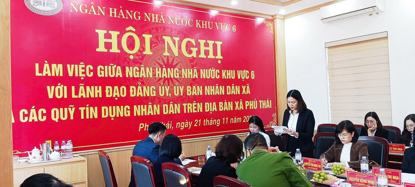 Sáng ngày 21/11/2025, Đoàn công tác Ngân hàng Nhà nước khu vực 6 do bà Nguyễn Thị Dung, Quyền Giám đốc Ngân hàng Nhà nước khu vực 6 làm Trưởng đoàn đã có buổi làm việc với lãnh đạo Đảng ủy, UBND xã Phú Thái và các Quỹ tín dụng nhân dân trên địa bàn xã.