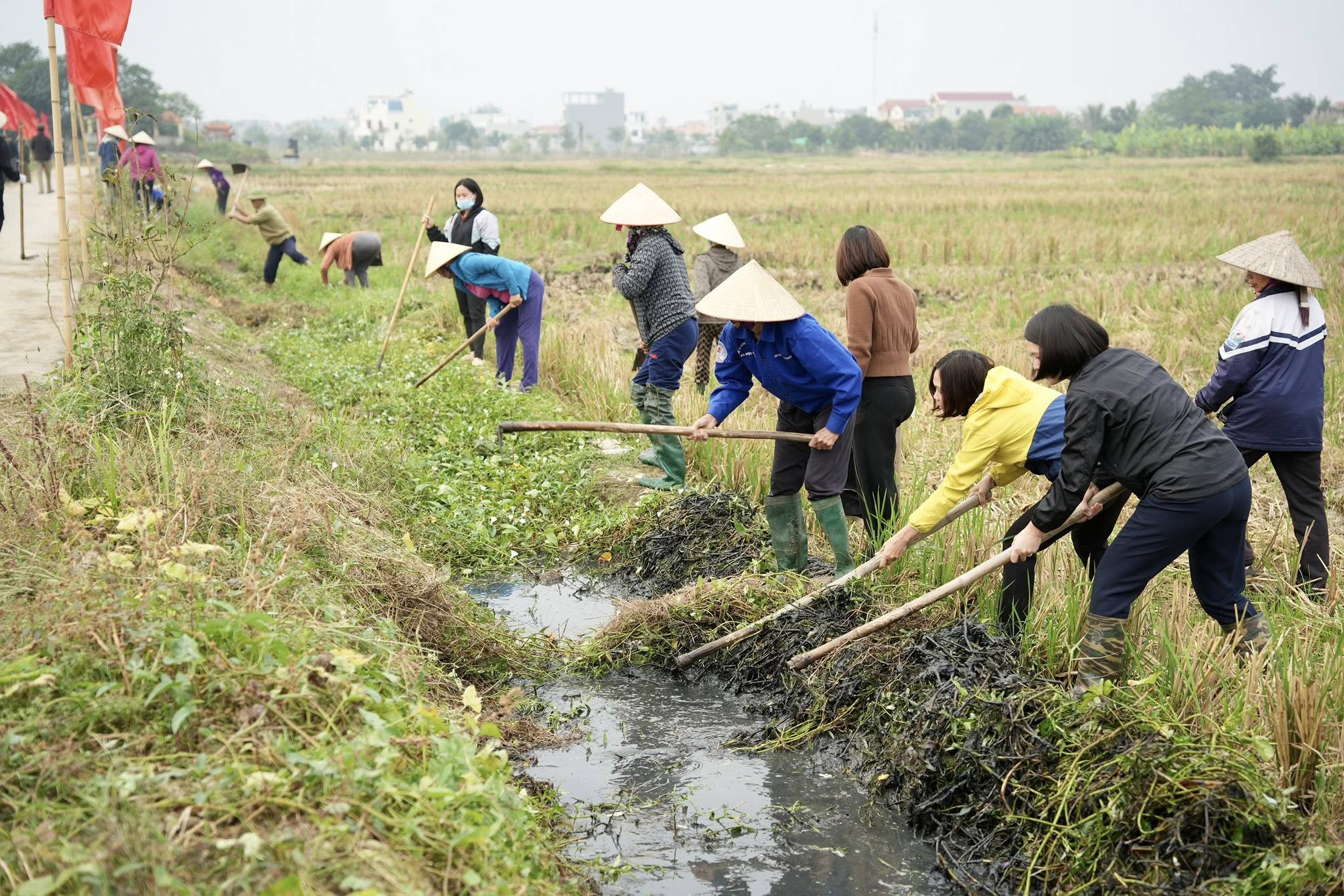 Đợt ra quân tập trung nạo vét, khơi thông dòng chảy hệ thống kênh mương, cửa cống, hố hút trạm bơm; tu bổ bờ vùng, bờ kênh, bảo đảm phục vụ tưới tiêu, phòng chống hạn hán, ngập úng, chuẩn bị tốt cho gieo cấy vụ Xuân năm 2026.
