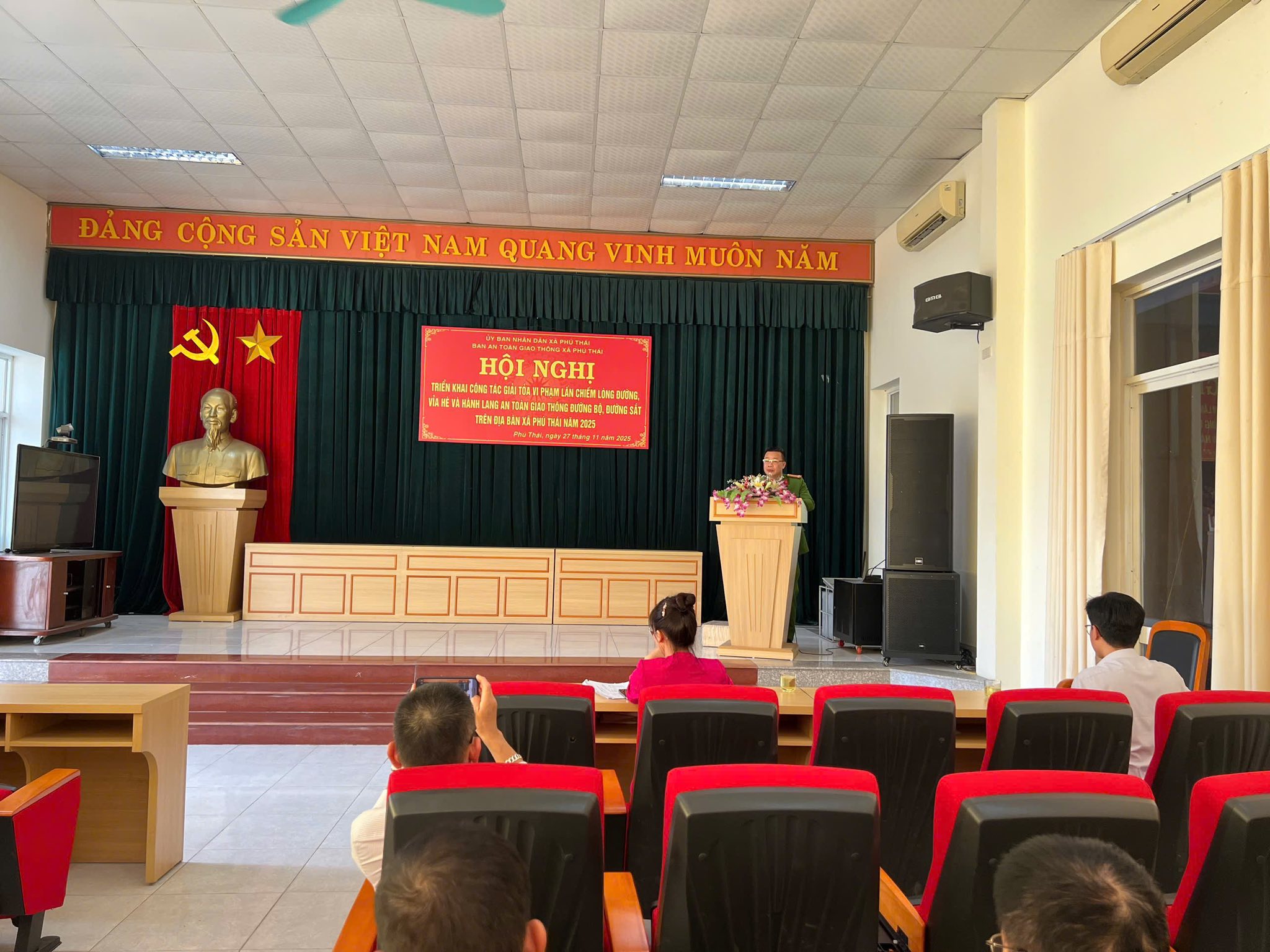 Chiều ngày 27/11/2025, Ban An toàn giao thông (ATGT) xã Phú Thái tổ chức hội nghị triển khai công tác giải tỏa vi phạm lấn chiếm lòng đường, vỉa hè và hành lang an toàn giao thông đường bộ, đường sắt trên bàn xã. Theo báo cáo đánh giá của Công an xã Phú Thái, mặc dù công tác phối hợp đã có chuyển biến tích cực, nhưng tình trạng lấn chiếm lòng, lề đường, vỉa hè để kinh doanh tự phát (nhóm chợ) vẫn còn tồn tại và tiềm ẩn nguy cơ mất trật tự an toàn giao thông.