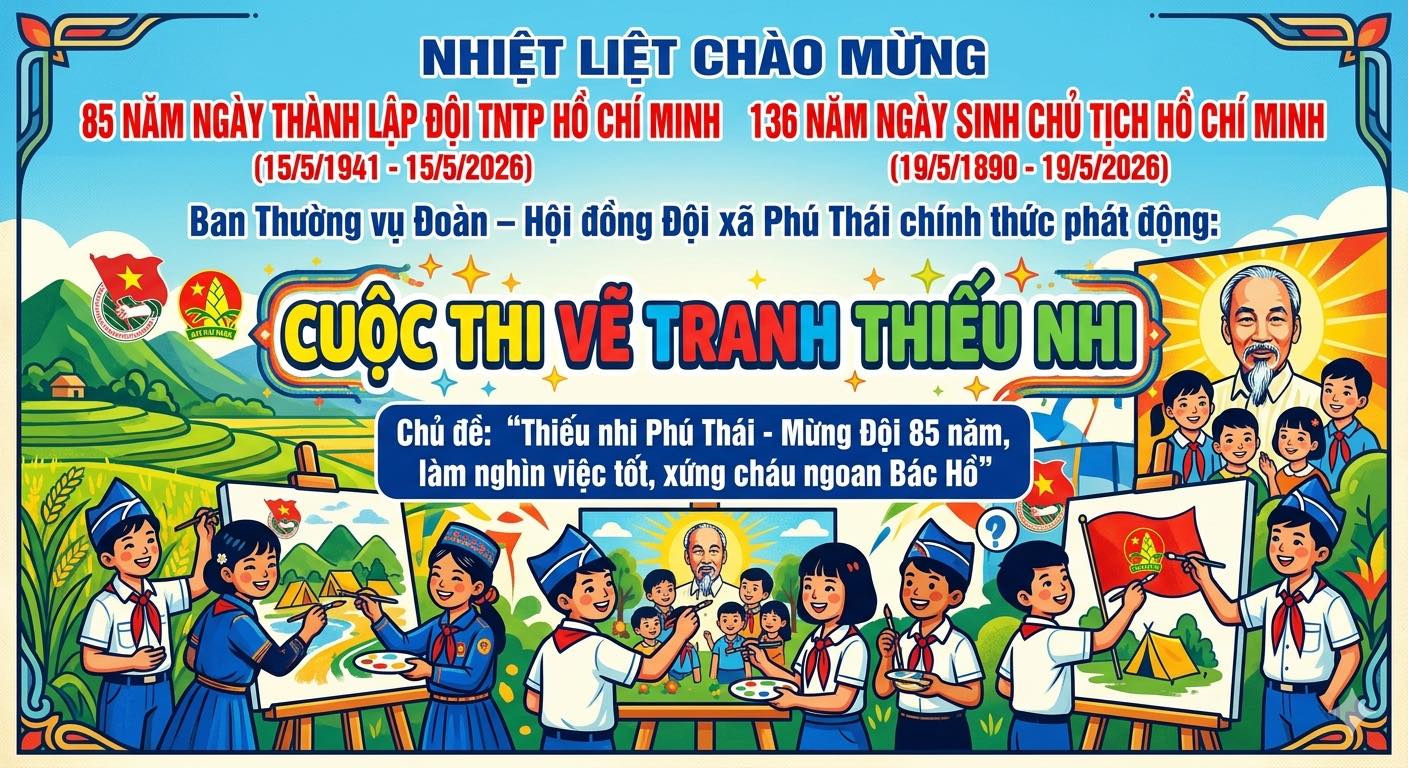 Hướng tới chào mừng 85 năm Ngày thành lập Đội TNTP Hồ Chí Minh (15/5/1941 - 15/5/2026) và 136 năm Ngày sinh Chủ tịch Hồ Chí Minh (19/5/1890 - 19/5/2026), Ban Thường vụ Đoàn – Hội đồng Đội xã Phú Thái phát động "CUỘC THI VẼ TRANH THIẾU NHI"