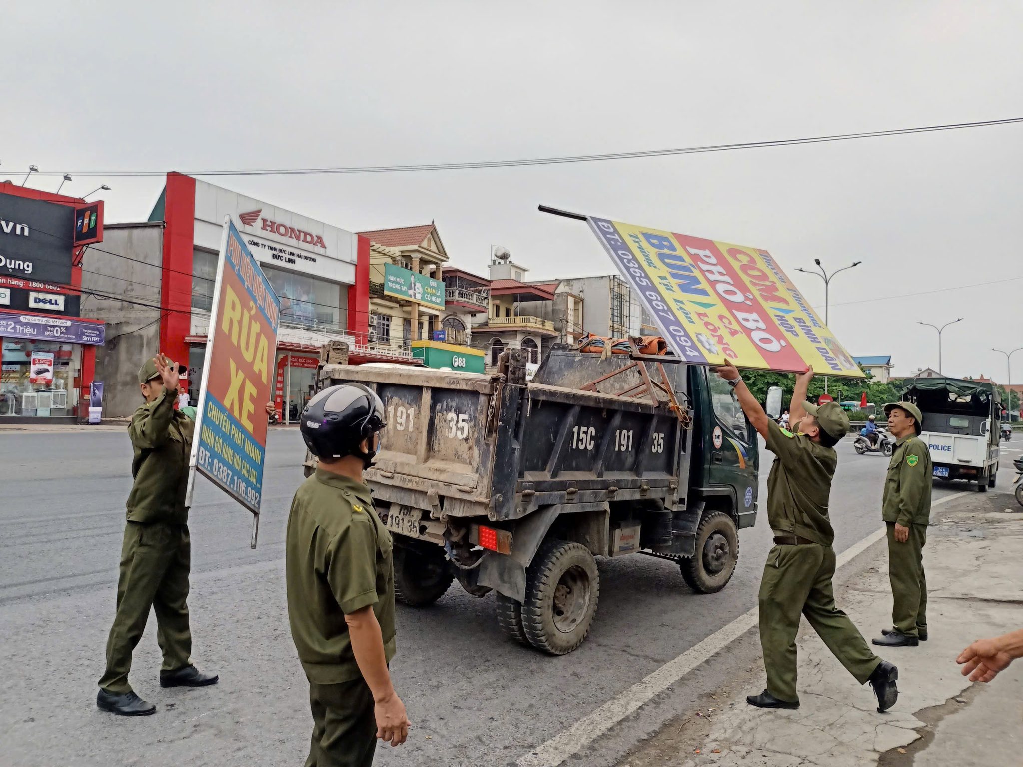Với tinh thần kiên quyết, nghiêm minh, không có ngoại lệ, lực lượng chức năng của xã đã đồng loạt triển khai các biện pháp xử lý, giải tỏa các trường hợp lấn chiếm lòng đường, vỉa hè để bày bán hàng hóa, kinh doanh; tháo dỡ mái che, mái vẩy, biển quảng cáo và các vật dụng lắp đặt trái quy định. Nhiều trường hợp vi phạm đã được xử lý, thu giữ tang vật theo quy định của pháp luật.