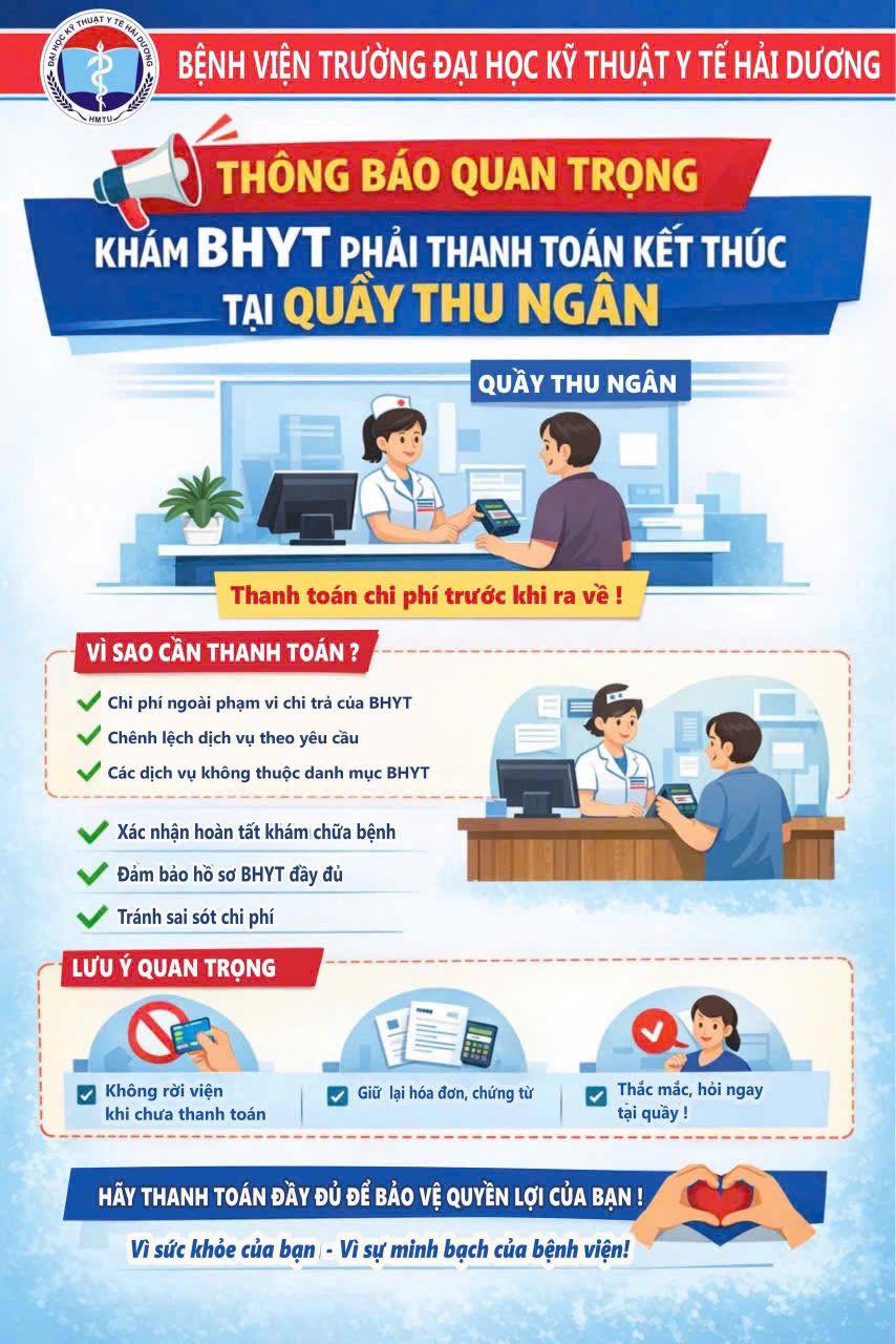 Việc thanh toán tại quầy thu ngân không chỉ là bước cuối cùng trong quy trình khám bệnh mà còn giúp bảo vệ quyền lợi chính đáng của người tham gia BHYT.