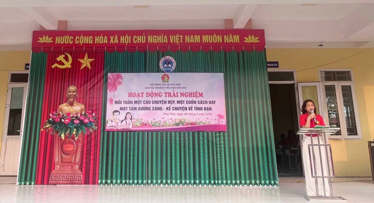 Liên đội Trường Tiểu học Kim Anh xã Phú Thái, đã tổ chức hoạt động trải nghiệm với chủ đề kể chuyện về tình bạn trong tiết sinh hoạt dưới cờ. tiếp tục lan toả phong trào “Mỗi tuần một câu chuyện đẹp, một cuốn sách hay, một tấm gương sáng”